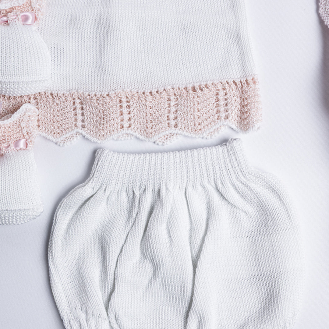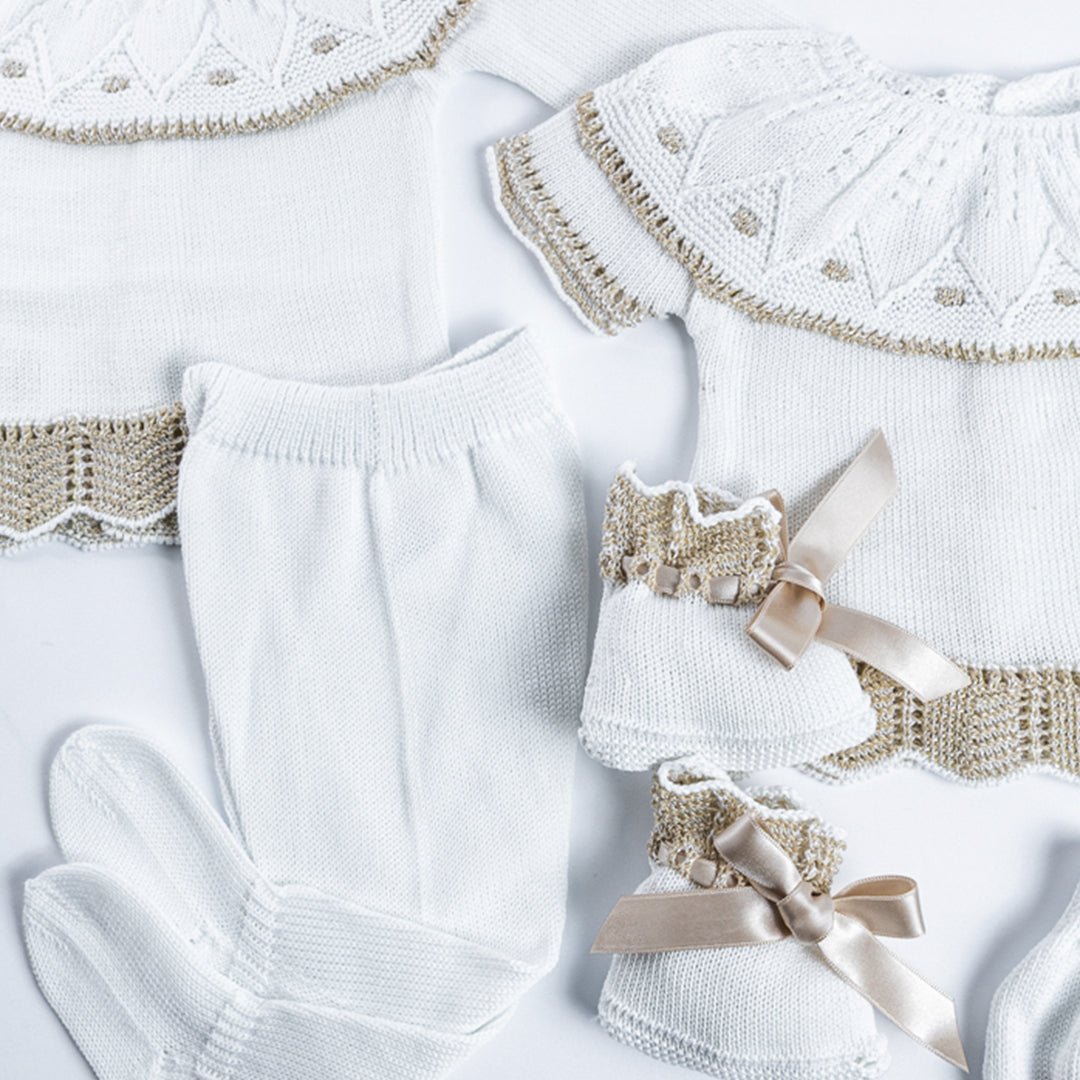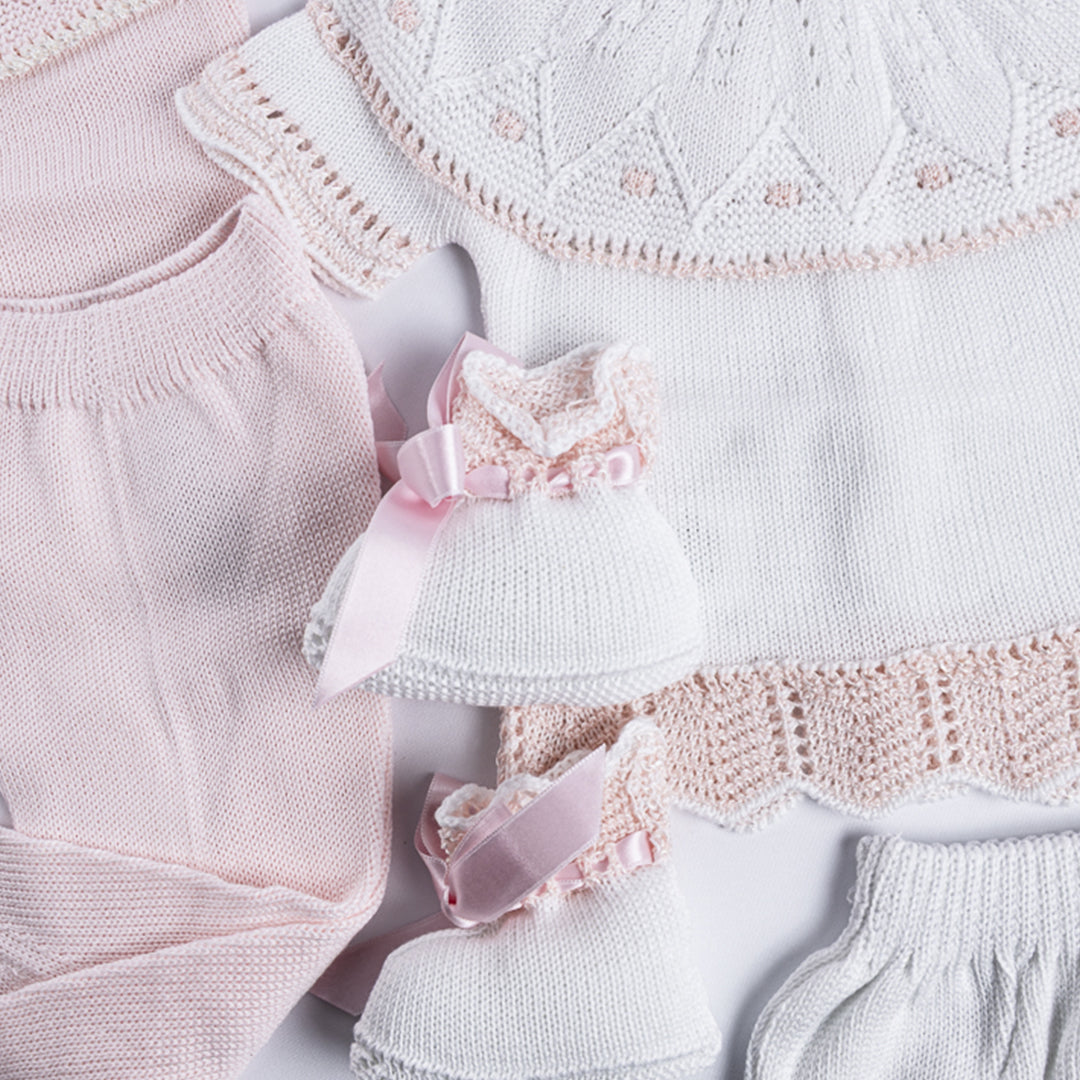 Un regalo pensado para enamorar desde el primer instante. Este set incluye todas las piezas esenciales para vestir y abrigar al recién nacido con la elegancia y dulzura de la moda española.